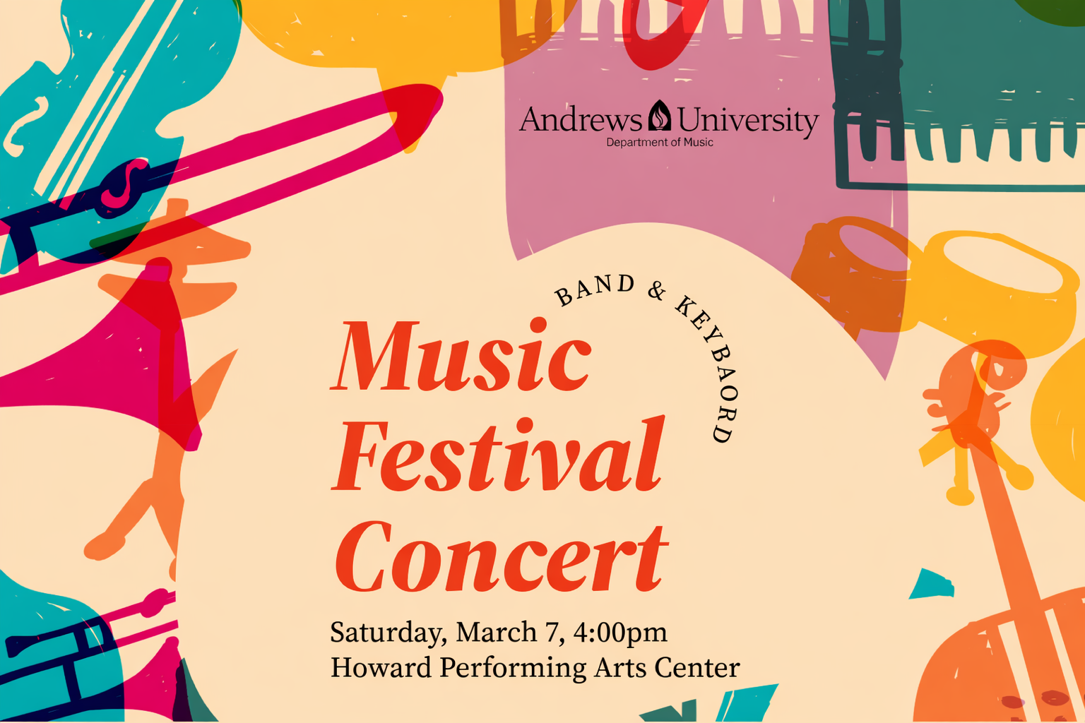 Please join us this Sabbath afternoon, at 4:00 PM in the HPAC for the finale concert of the 2026 AU Music Festival! This year's group includes over 100 band and keyboard students from around the USA and Canada who will present the culmination of their hard work this afternoon under the direction of Byron Graves, Denisse Santos, Chi Yong Yun, and Kenneth Logan.