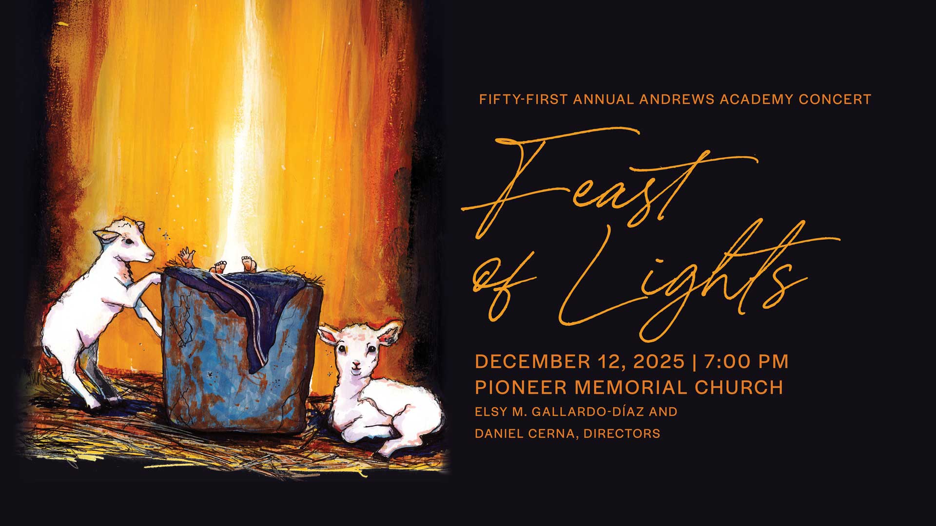 Andrews Academy will be presenting the 52nd annual Feast of Lights program on Friday, December 12, 2025 at 7:00 PM. The community is invited to attend this spectacular night of music, Scripture and drama honoring the King of Kings. It is an evening of lights, bells, instruments, choral singing, congregational singing, shepherds, a Nativity scene, and the retelling of a glorious Christmas story. Chorale and Orchestra will end the program with the Hallelujah chorus. The church sidewalks will be arrayed in Christmas lighting. The program will speak to your hearts of His wondrous love. All are invited to attend this free program held at Pioneer Memorial Church on the campus of Andrews University.